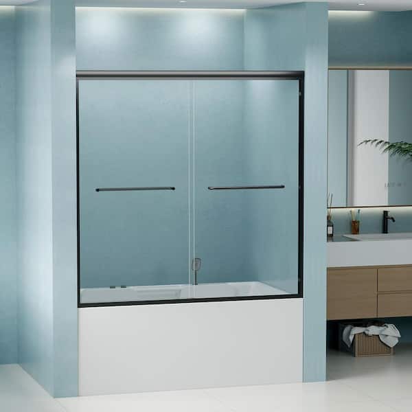 56 in. - 60 in. W x 58 in. H Double Sliding Semi-Frameless Tub Door in Matte Black with 1/4 in.Tempered Clear Glass