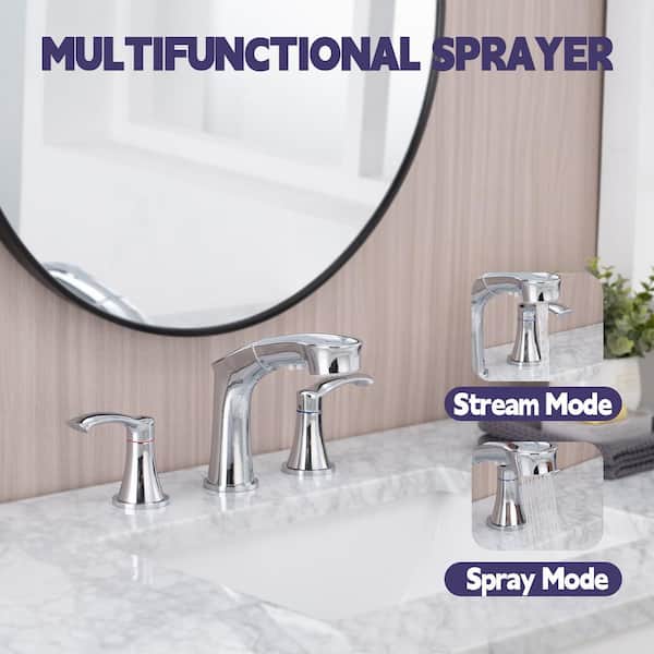 8 in. Widespread Double Handle Pull Out Bathroom Sink Faucet with Drain Assembly in Polished Chrome