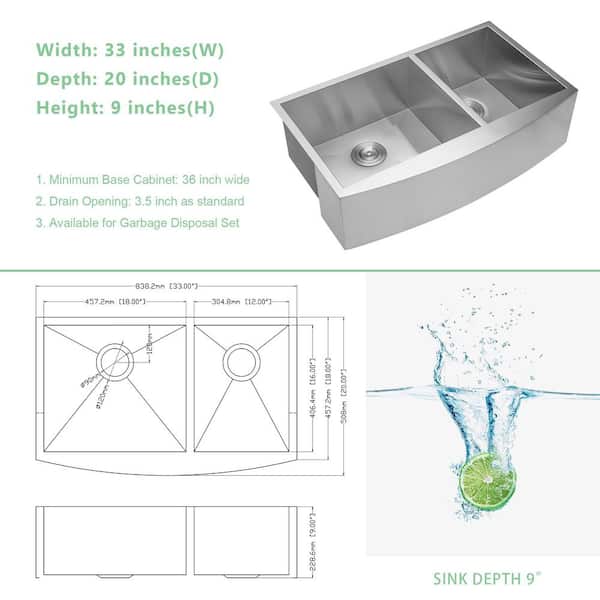 Double Kitchen Sink 33 in.x 20 in.16-Gague Stainless Steel Farmhouse Sink with Bottom Grid