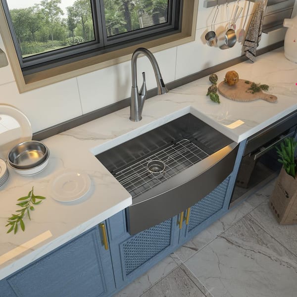 Gold 30 in. Apron-Front Stainless Steel 16-Gauge Single Bowl Farmhouse Kitchen Sink with Bottom Grids