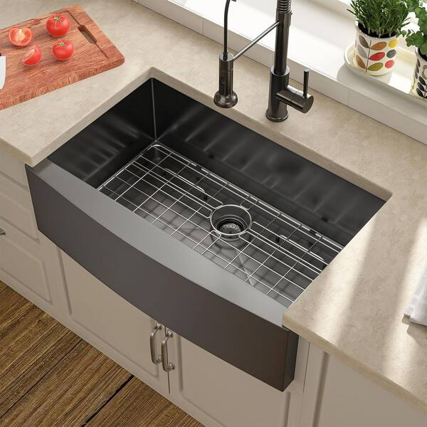 Gunmetal Black 33 in.Undermount Stainless Steel 16-Gauge Single Bowl Farmhouse Kitchen Sink with Sink Grids