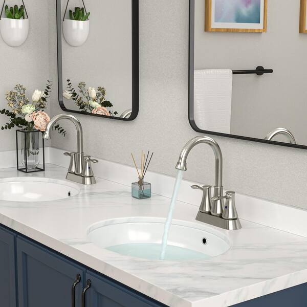 High Arc 4 in. Centerset Double Handle Bathroom Sink Faucet with Drain Kit Included in Brushed Nickel