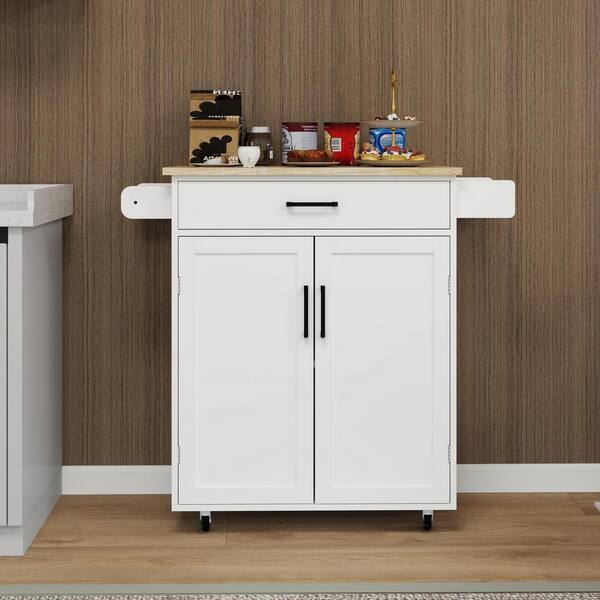 Wood White Storage Cabinet 28.7 in. W Rolling Kitchen Island with Adjustable Shelves & Towel Rack