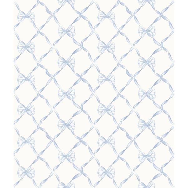Baby Bow Blue Bella Ribbon Ribbon Trellis Wallpaper Sample