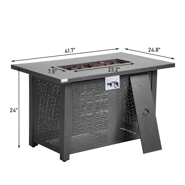8-Piece Black Wicker Patio Conversation Set with 42 in. Outdoor Fire Pit Table, Coffee Table and Gray Cushions