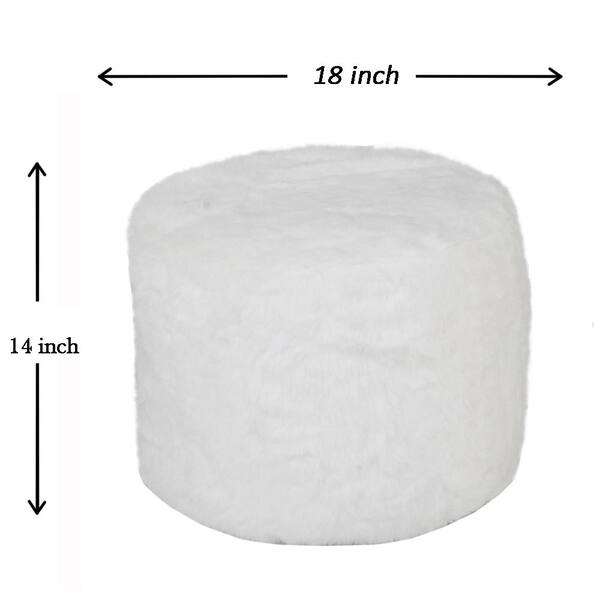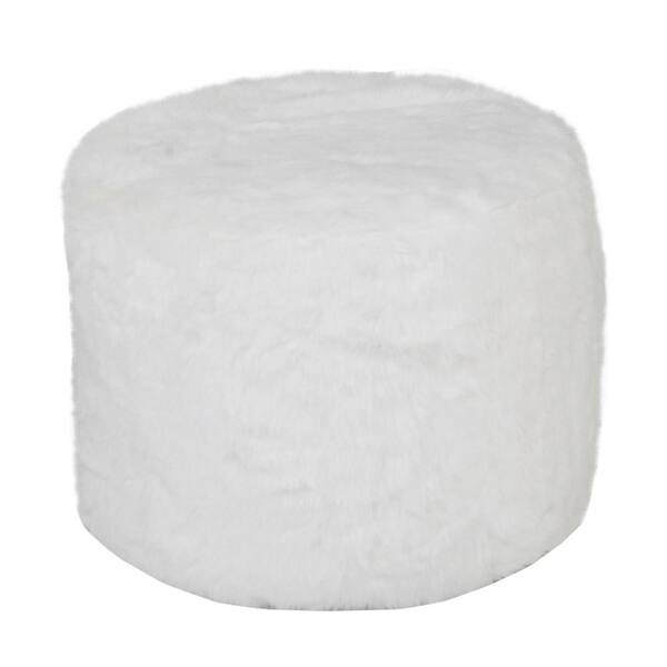 Faux Fur Fluffy 18 in. x 14 in. White Indoor Ottoman Pouf