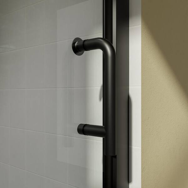 30 in. W x 72 in. H Pivot Frameless Shower Door in Black Finish with Clear Glass