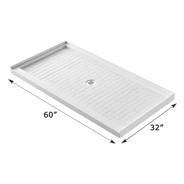 60 in. L x 32 in. W Alcove Shower Pan Base with Center Drain