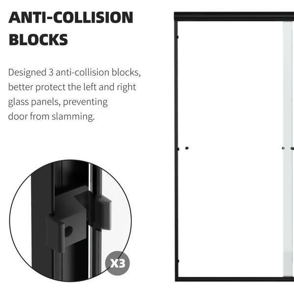 60 in. W x 62 in. H Double Sliding Framed Shower Door in Matt Black Finish with Transparent Glass