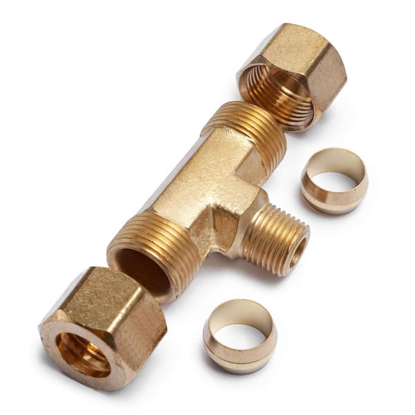 3/8 in. O.D. x 3/8 in. O.D. x 1/8 in. MIP Brass Compression Branch Tee Fitting (5-Pack)
