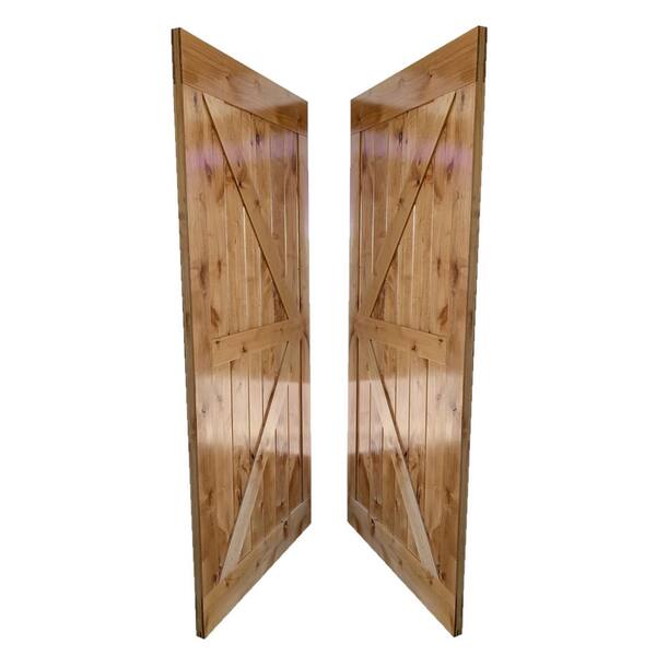 Double 36 in. x 84 in. Biparting Solid Core Clear Gloss Finished Alder Wood Sliding Barn Doors with Hardware Kit
