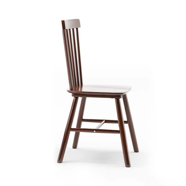 18 in. Walnut Classic Windsor Dining Chair, Solid Wood High Spindle Back Kitchen Chair Set of 2