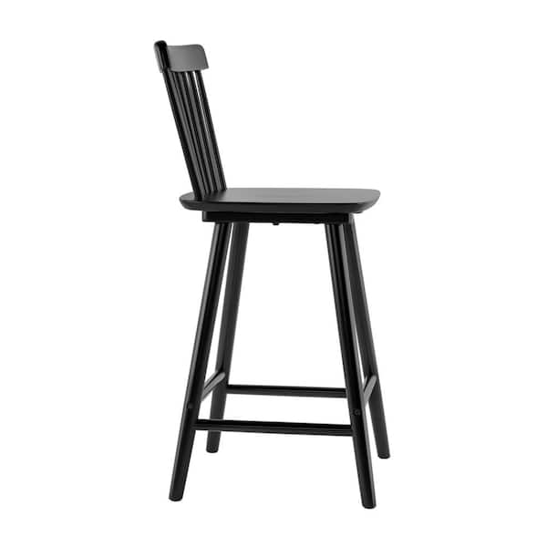 24 in. Black Classic Windsor Back Contoured Seat Bar Stools Solid Wood Counter Height Barstools(Set of 3)