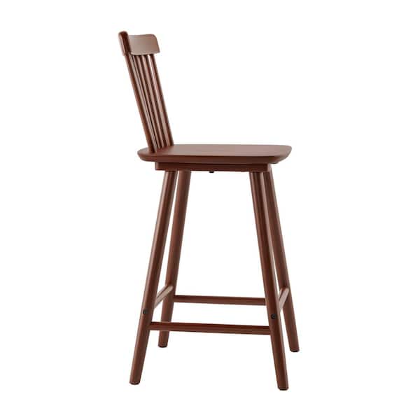 24 in. Brown Classic Windsor Back Contoured Seat Bar Stools Solid Wood Counter Height Barstools(Set of 4)