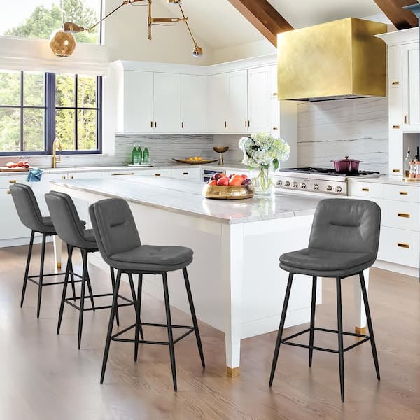 26 in. Modern Metal Frame Gray Faux Leather Upholstered Barstools with Footrest (Set of 4)