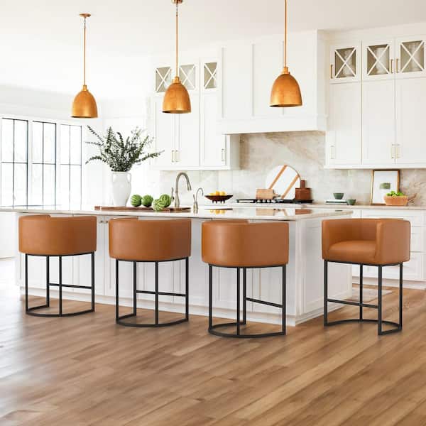 26 in. Yellowish Brown and Black Low Back Bar Stool with Metal Frame Counter Height Faux Leather Counter Stool(Set of 4)