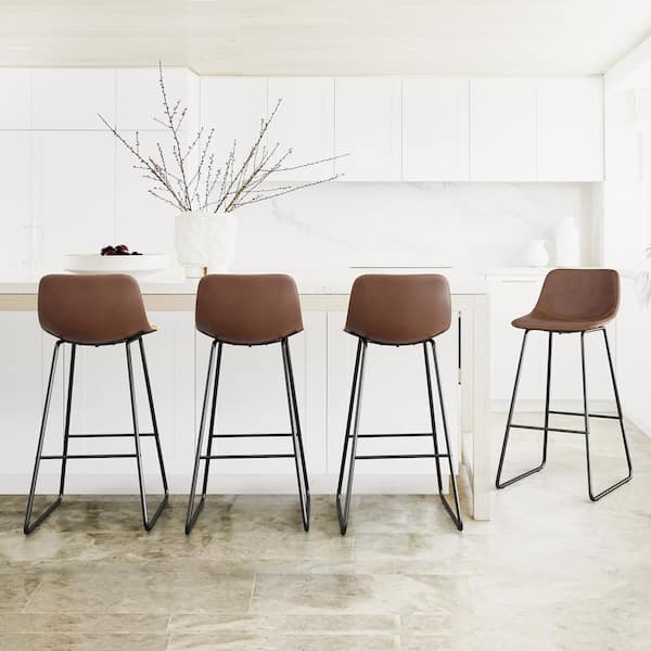 Alexander 30 in. Dark Brown Faux Leather Bar Stool Low Back Metal Frame Counter Height Bar Stool (Set of 8)