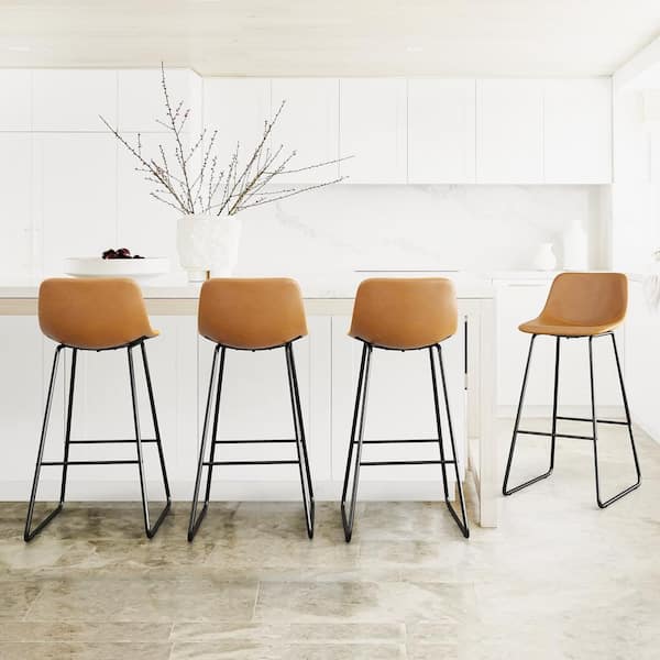 Alexander 30 in. Whiskey Brown Faux Leather Bar Stool Low Back Metal Frame Counter Height Bar Stool (Set of 7)