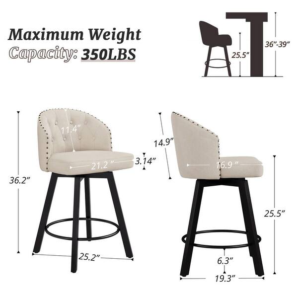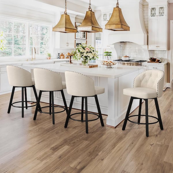 Arturo 26 in.Linen Fabric Upholstered Swivel Bar Stool with Metal Frame Nailhead Counter Barstool Set of 4