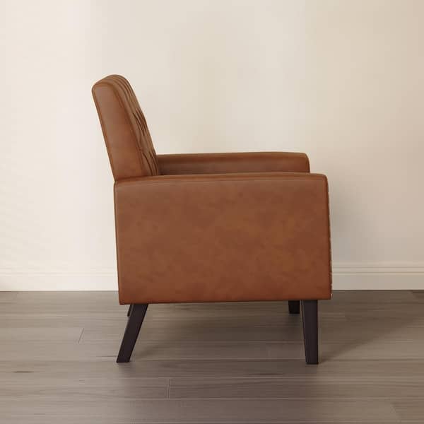 Athena Camel Faux Leather Arm Chair Accent Chair with Wood Frame Button Tufted Back Nailhead Living Room