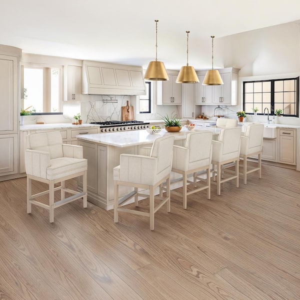 Cavino 27 in. Linen Fabric Upholstered Counter Height Bar Stool Armrests and Wood Frame Counter Stool Set of 6