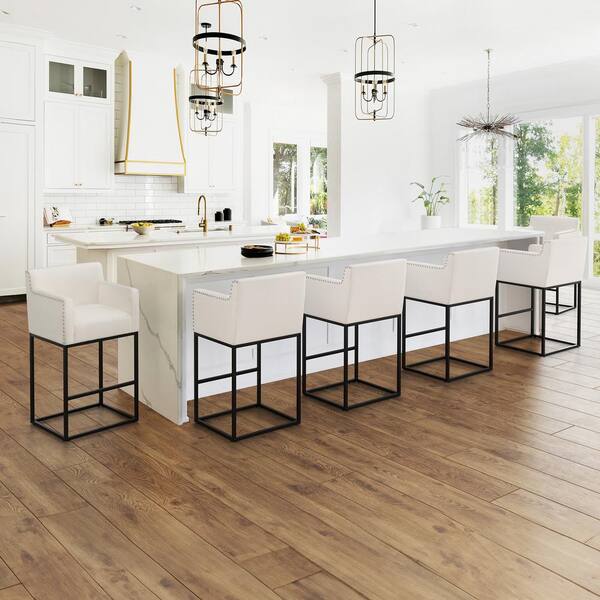 Hampton 30 in. Beige Modern Linen Upholstered Bar Stool Square Metal Frame Counter Height Bar Stool (Set of 6)