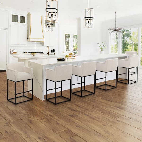 Hampton 30 in. Linen Modern Linen Upholstered Bar Stool Square Metal Frame Counter Height Bar Stool (Set of 6)