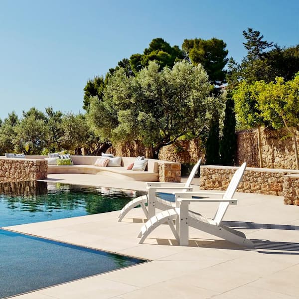 Hampton Curveback White All-Weather Plastic Outdoor Patio Adirondack Chair with Cup Holder Fire Pit Chair Set of 4