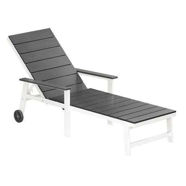 Hedia Gray Recycled HDPS Plastic Adjustable Outdoor Patio Reclining Chaise Lounge Chair with Wheel