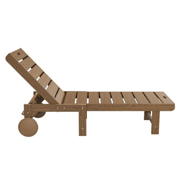 Heli Recycled Brown HDPS Patio Lounge Chair Plastic Stackable Outdoor Chaise Lounge Chair with Wheel