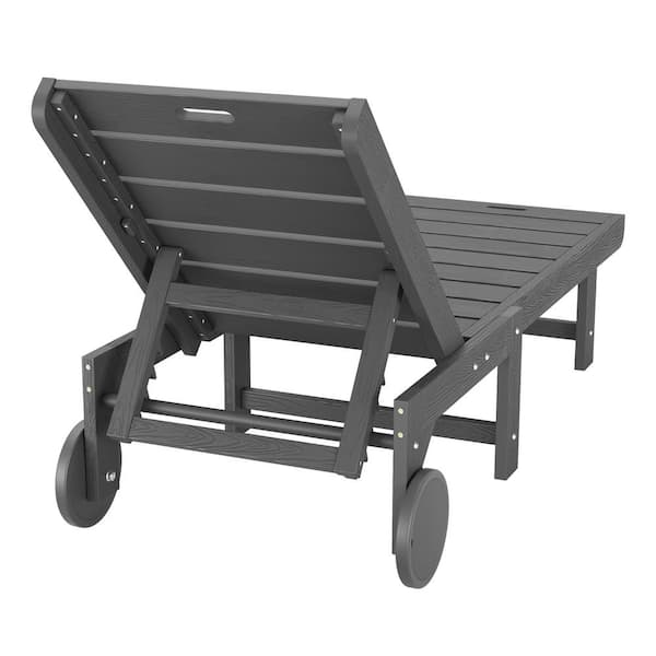 Heli Recycled Dark Gray HDPS Patio Lounge Chair Plastic Stackable Outdoor Chaise Lounge Chair with Wheel Set of 4