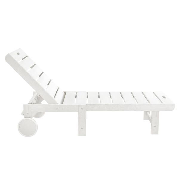 Heli Recycled White HDPS Patio Lounge Chair Plastic Stackable Outdoor Chaise Lounge Chair with Wheel Set of 3