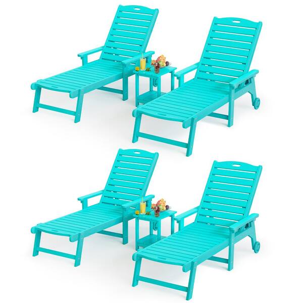 Hellen Keller Aruba Blue 6-Piece HDPS Plastic Adjustable Outdoor Patio Reclining Chaise Lounge Chair Set with Side Table