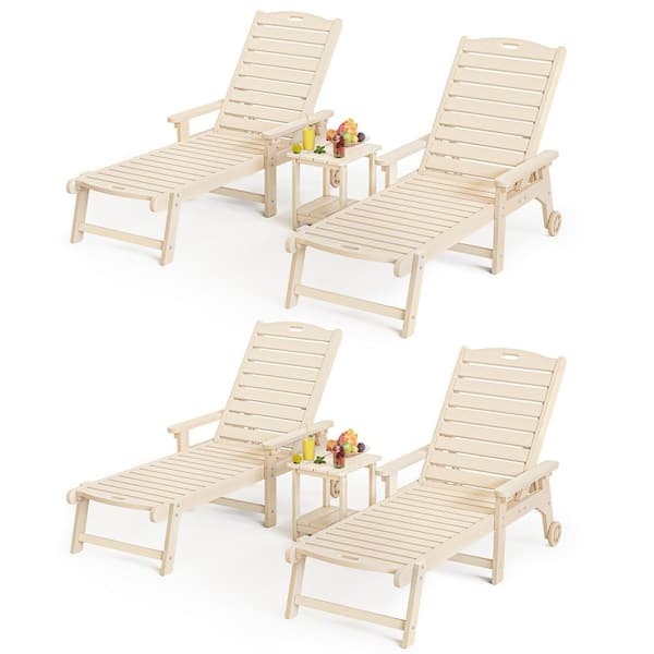 Hellen Keller Sand 6-Piece HDPS Plastic Adjustable Outdoor Patio Reclining Chaise Lounge Chair Set with Side Table