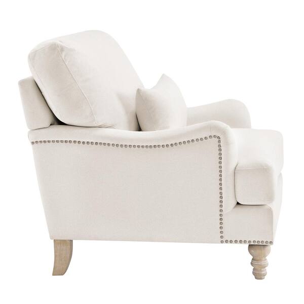 Ivory Fabric Upholstered Club Chair Filled with Goose Down and Foam Upholstered Accent Chair (Set of 2)