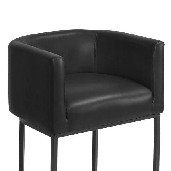 Jessica 26 in. Black Counter Bar Stool PU Leather Upholstered Barrel Counter Stool with Metal Frame (Set of 3)