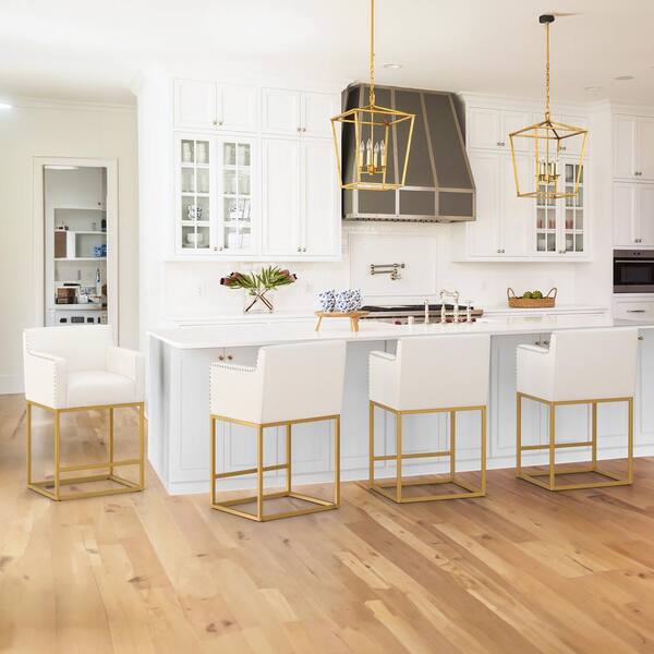 Luna 26 in. Beige Fabric Upholstered Counter Bar Stool with Golden Metal Frame Square Counter Stool Set of 4