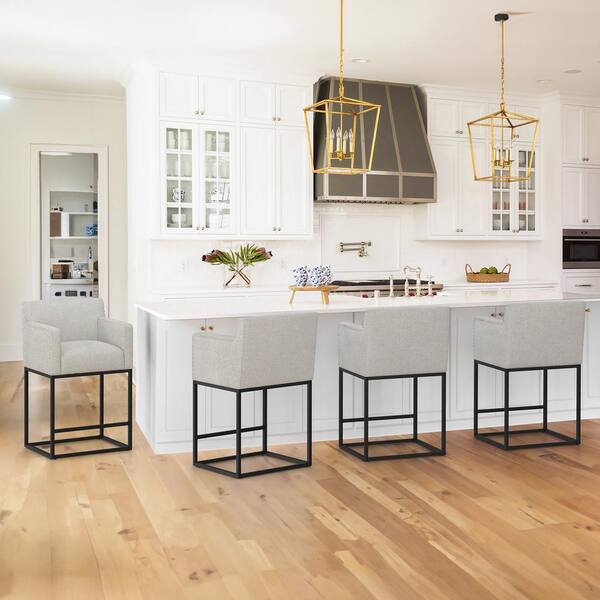 Luna 26 in. Gray Fabric Upholstered Counter Bar Stool with Black Metal Frame Square Counter Stool Set of 4
