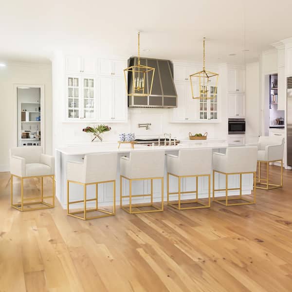 Luna 26 in. Linen Fabric Upholstered Counter Bar Stool with Golden Metal Frame Square Counter Stool Set of 6