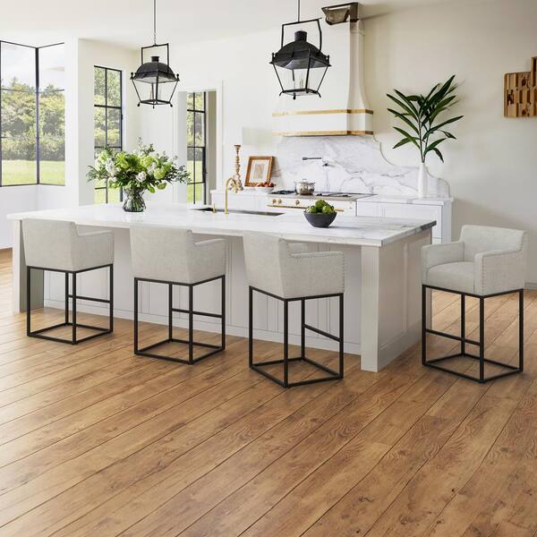 Luna 30 in. Gray Fabric Upholstered Counter Bar Stool with Black Metal Frame Square Counter Stool Set of 4