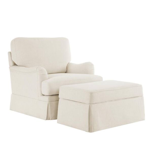 Muro 4-Piece Beige Fabric Modern Upholstered Swivel Accent Arm Chair Metal Base Barrel Sofa Chair with Storage Ottoman