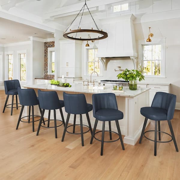 Paul 26 in. Blue Modern Faux Leather 360° Swivel High Back Barstool Solid Wood Counter Height stool Set of 6