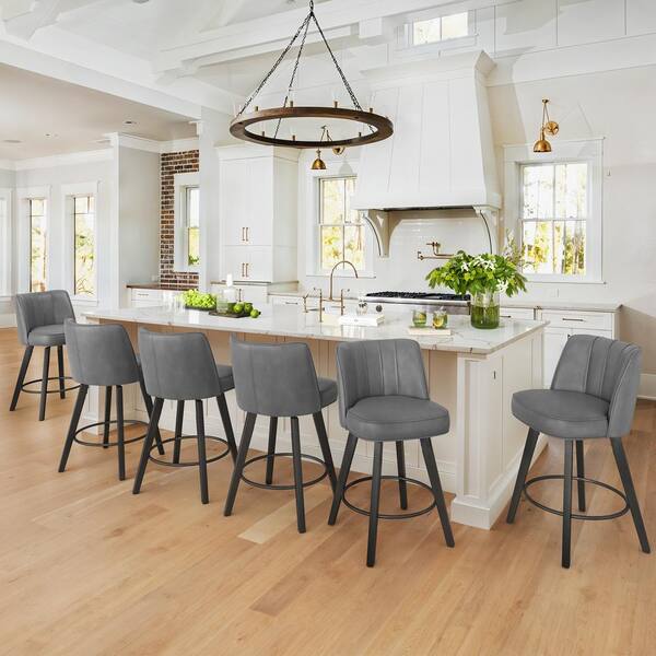 Paul 26 in. Dark Gray Modern Faux Leather 360° Swivel High Back Barstool Solid Wood Counter Height stool Set of 6