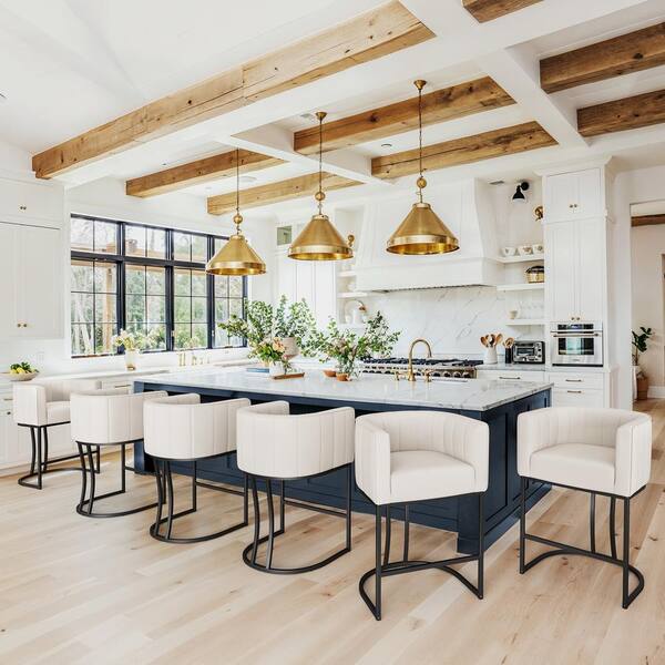 Siska 26 in. Modern Beige Fabric Upholstered Counter Stool with Black Metal Frame Barrel Counter Bar Stool Set of 6