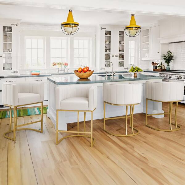 Siska 26 in.Modern Beige Fabric Upholstered Counter Stool with Gold Metal Frame Barrel Counter Bar Stool Set of 4