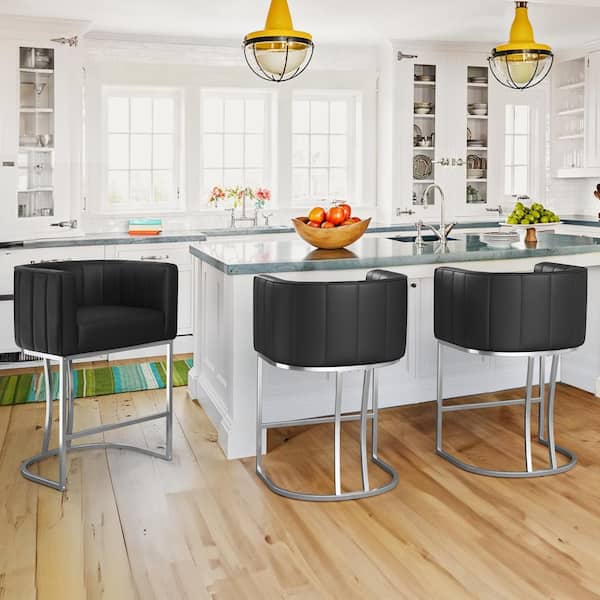 Siska 26 in.Modern Black Fabric Upholstered Counter Stool with Silver Metal Frame Barrel Counter Bar Stool Set of 3