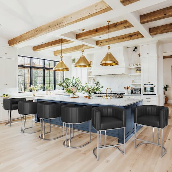 Siska 26 in.Modern Black Fabric Upholstered Counter Stool with Silver Metal Frame Barrel Counter Bar Stool Set of 6