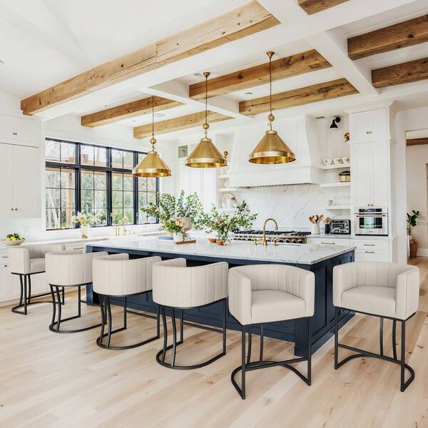 Siska 26 in.Modern Linen Fabric Upholstered Counter Stool with Black Metal Frame Barrel Counter Bar Stool Set of 6