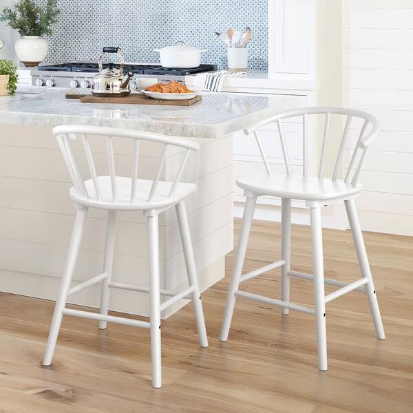 Winson Windsor 24 in. White Solid Wood Bar Stool for Kitchen Island Counter Stool with Spindle Back Set of 2