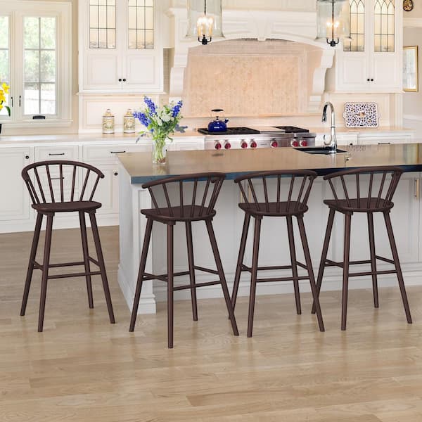 Winson Windsor 30 in.Espresso Solid Wood Bar Stool for Kitchen Island Counter Stool with Spindle Back Set of 4